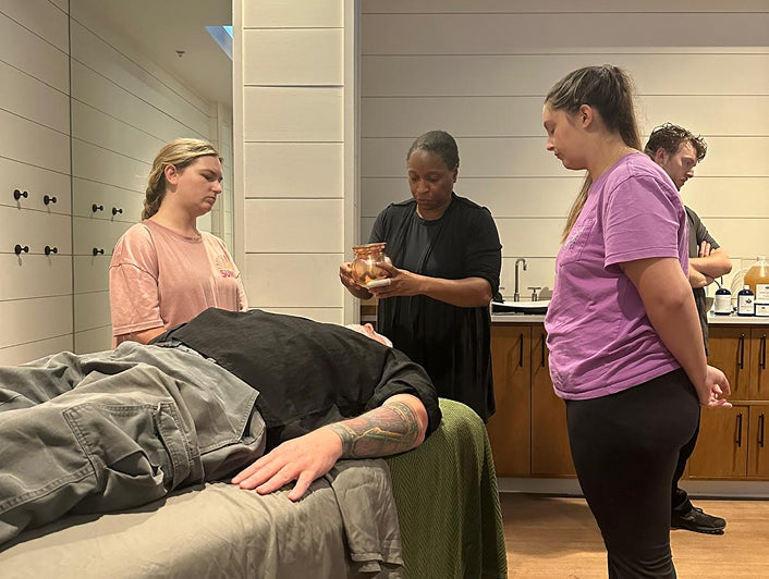 These educational sessions refine therapists’ skills and allow clients to witness the transformative power of our products and treatments firsthand. This ensures the dedication and expertise of all who work with and sell Shankara in the most impactful way possible.