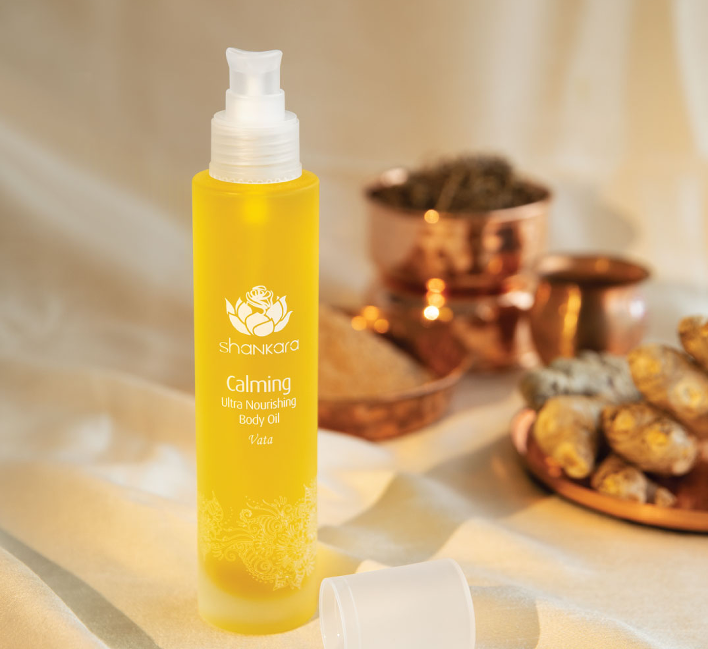 Our body oil is infused with a unique blend of Ayurvedic herbs and essential oils specifically chosen to promote deep relaxation and nourishment for the skin. The combination of Vetiver and Dashmoola provides calming effects while Borage oil rejuvenates and moisturizes.
